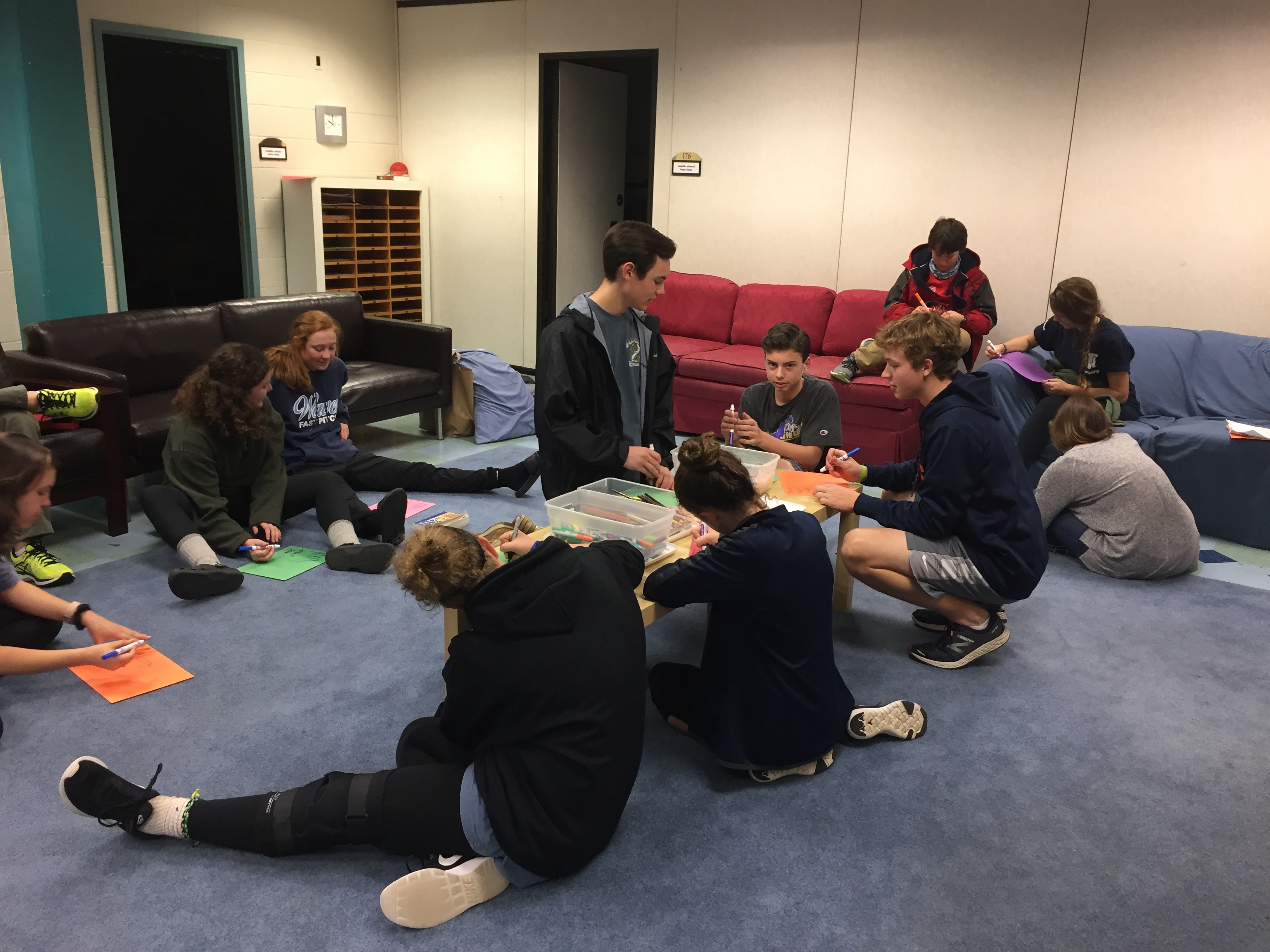 The theme of the youth Fall Retreat was What is Your Passion? We talked about what our passions are: teaching, singing, eating, sports! We thought about the question: What is God passionate about? That everyone has shelter and food, that people treat each other with love and respect, creativity! Then we discussed where our passion and the world’s needs meet. Guided by the quote of Frederick Buechner: “The place God calls you to is the place where your deep gladness and the world’s deep hunger meet,” the youth and I talked about where God might be leading them. We did some fun activities covering some different passions: the ropes course at University of Richmond, and an art project. We attended the Youth Jam concert that two of our youth, Ella Glaze and Eleanor Roberts were singing in. It was a great weekend of bible study, creating, team-building, and fellowship.